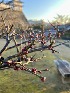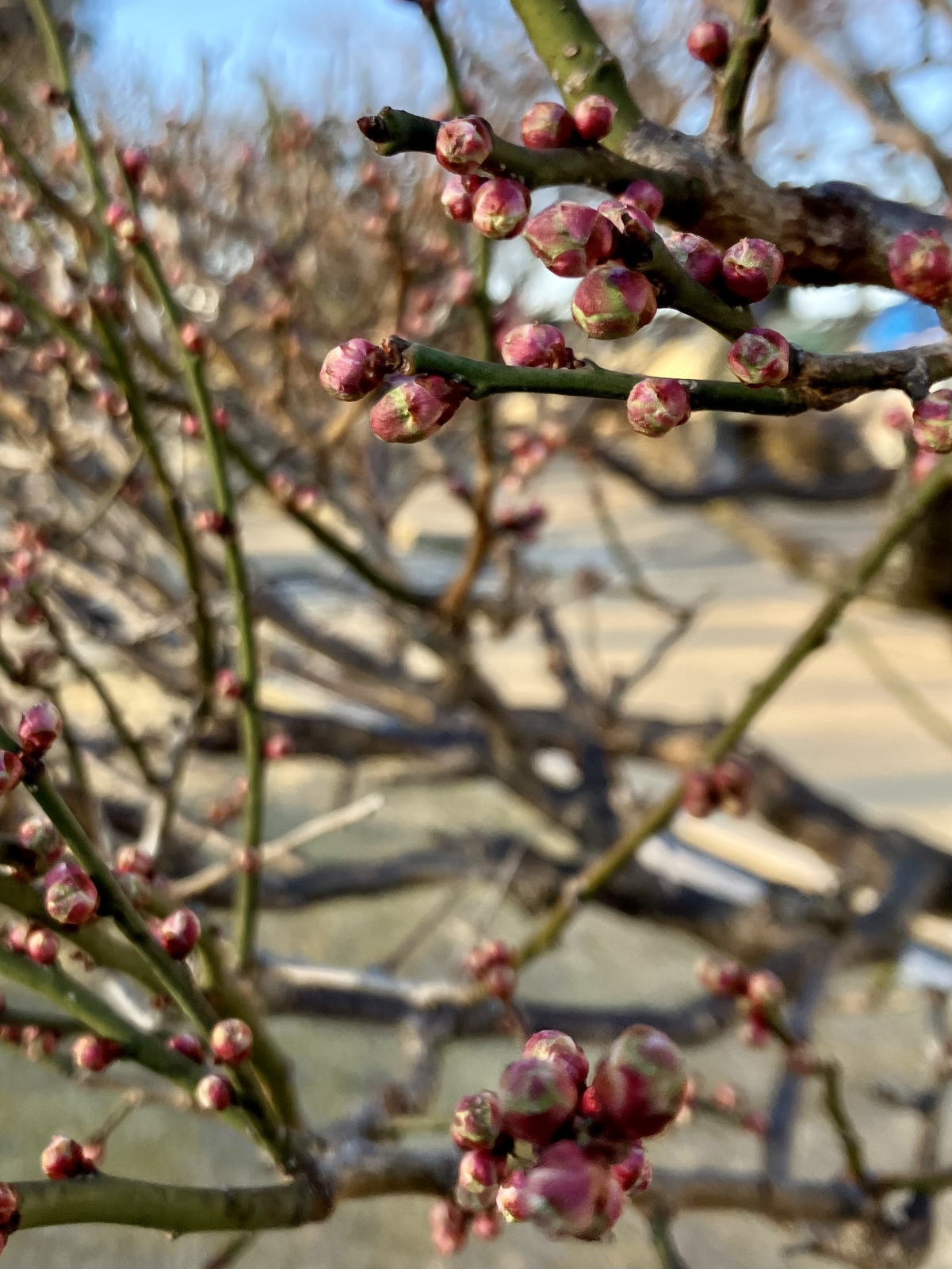 三本の木の中で白梅がいちばん先に膨らんできますね。