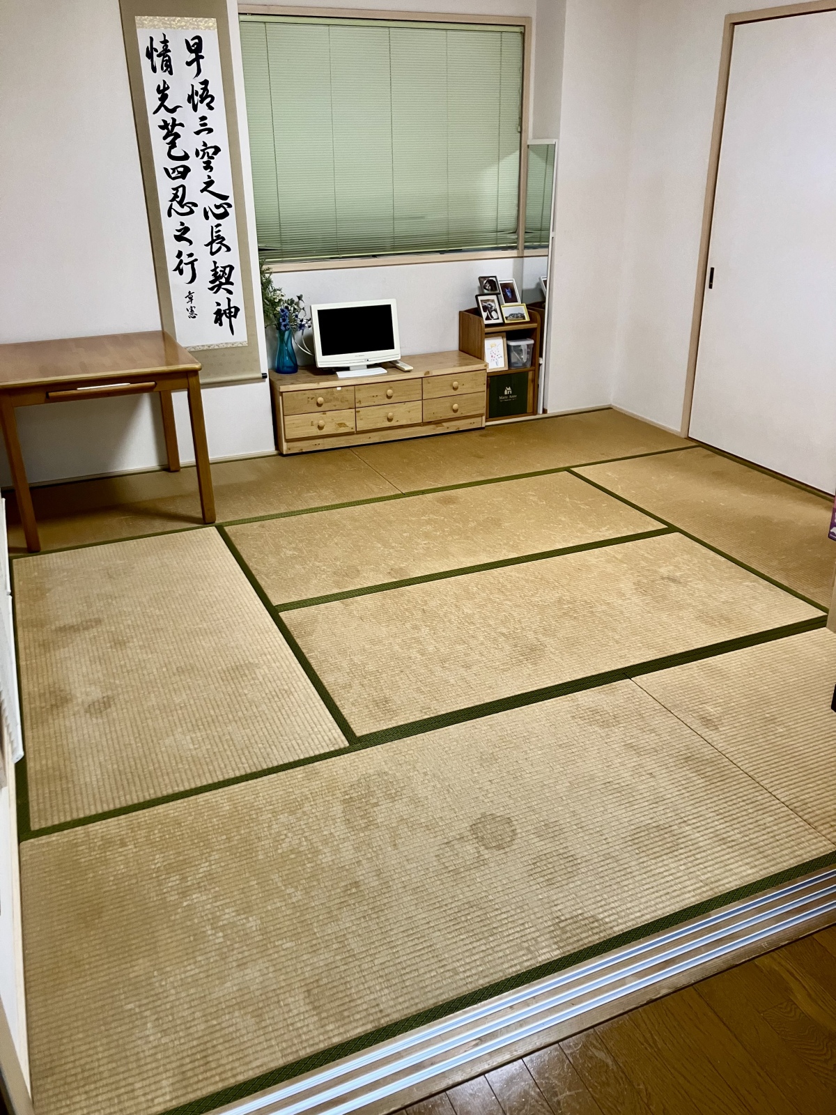 和室の畳が ジャムの吐き戻し跡、駆けずり回った爪跡でボロボロでした。